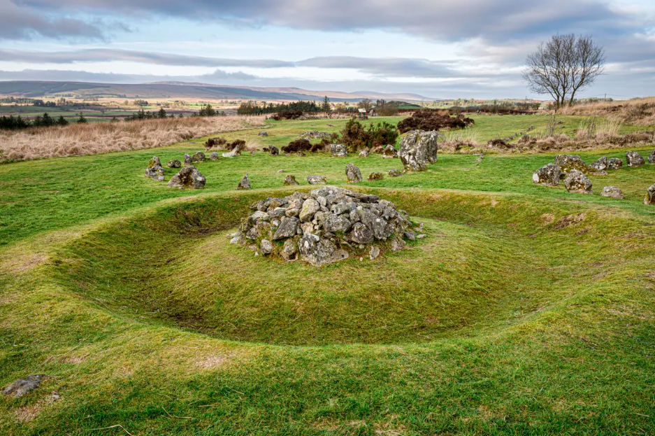 Nestled amongst the green grass and heather clad moorland sit 7 mystical circles, 10 rows of stones and 12 cairns, carefully arranged.